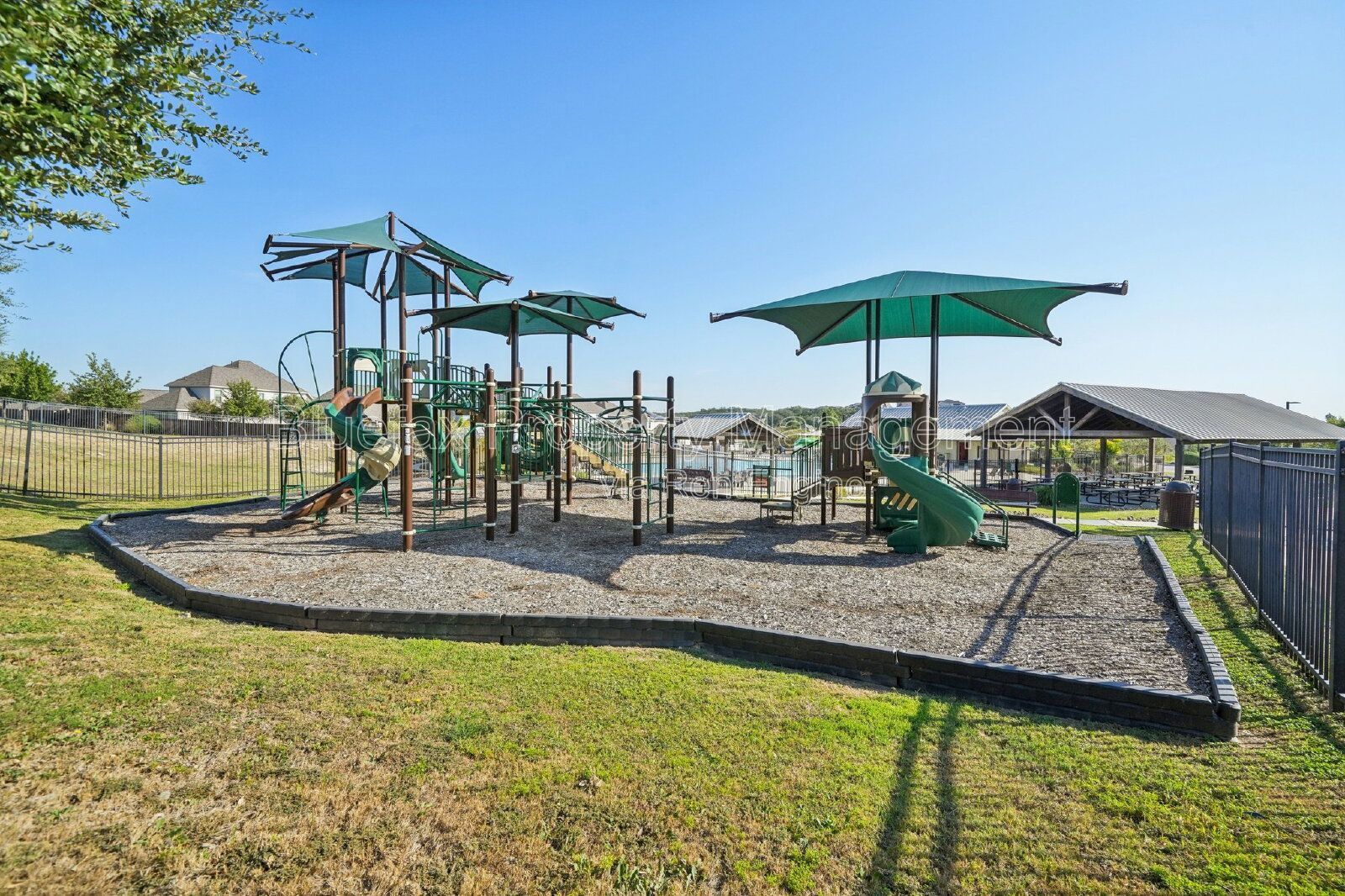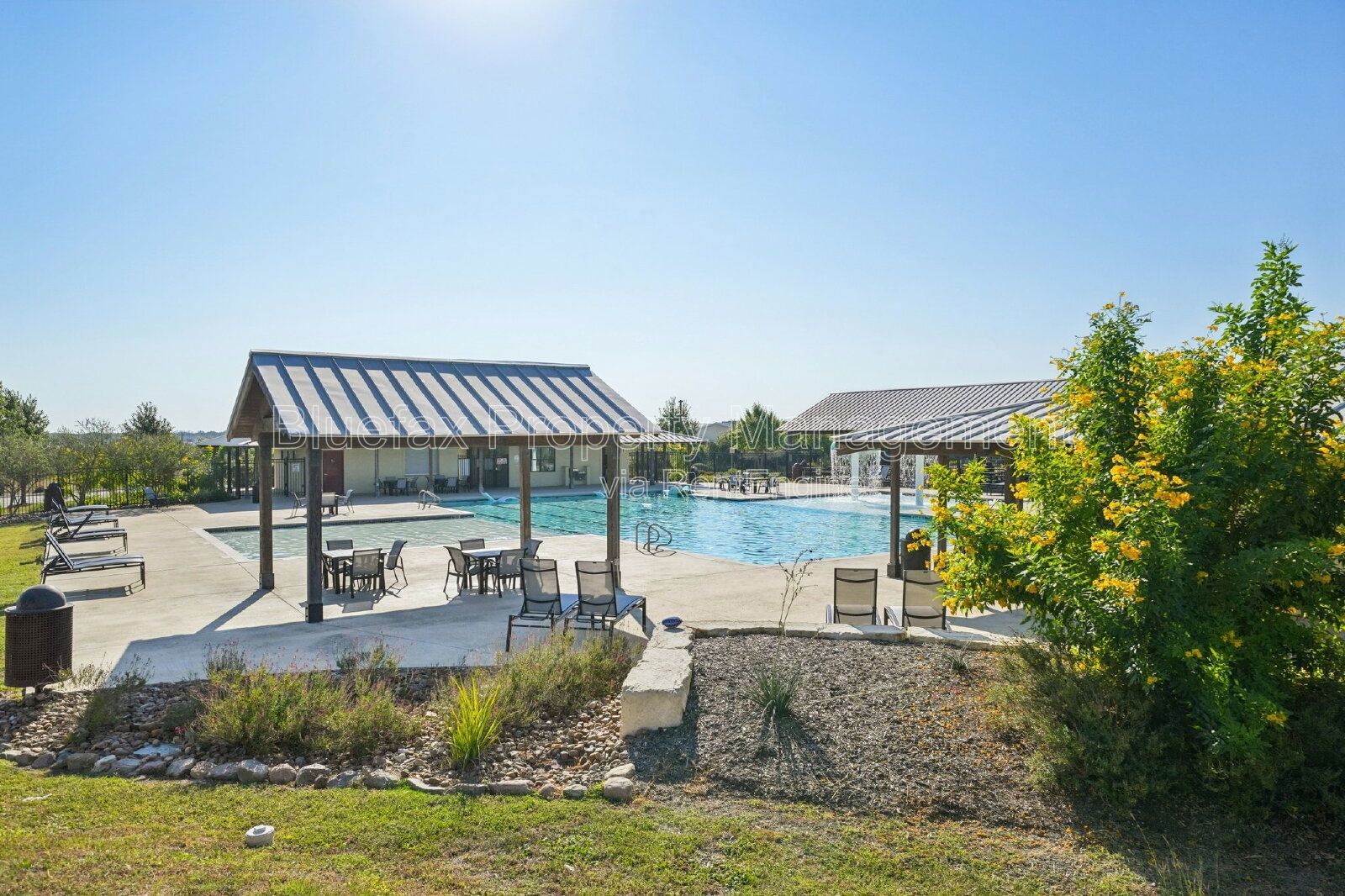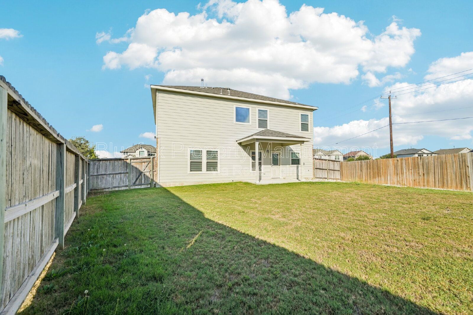 Covered patio out back with a deep back yard, privacy fencing and sprinkler system installed.