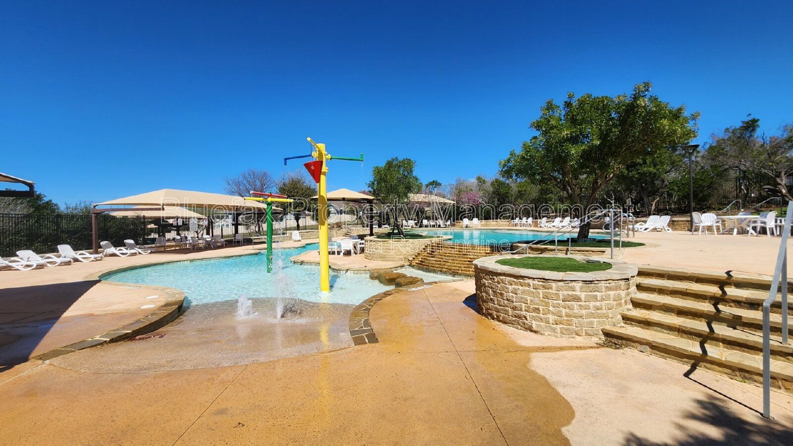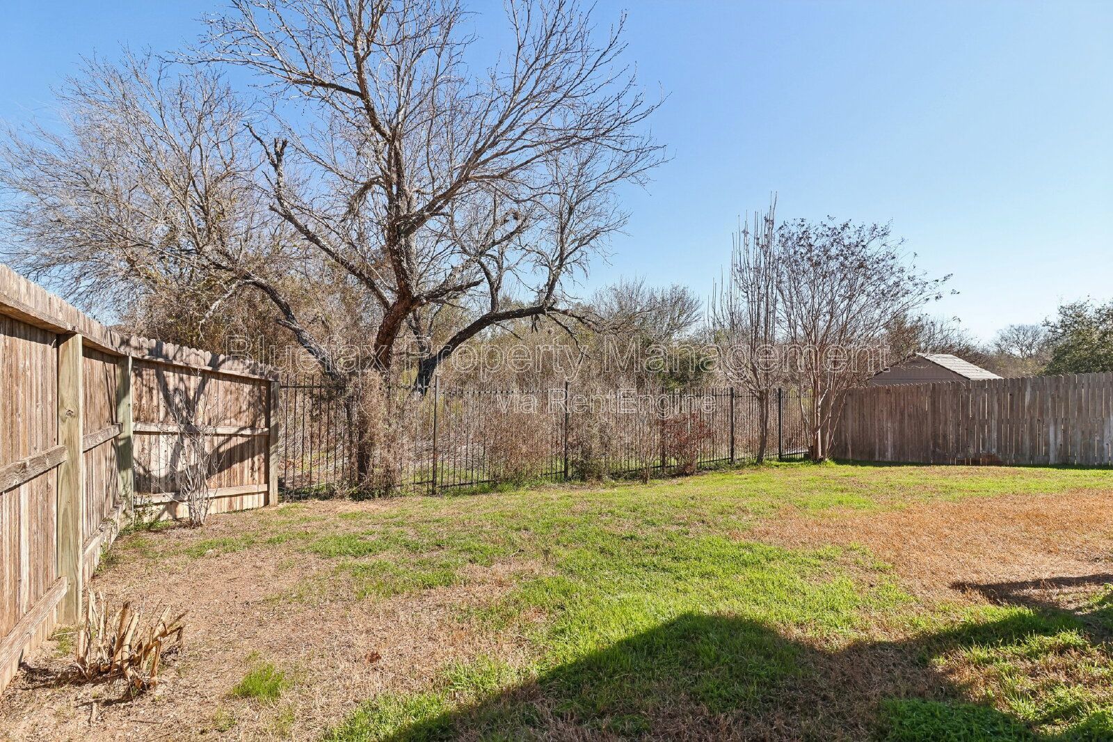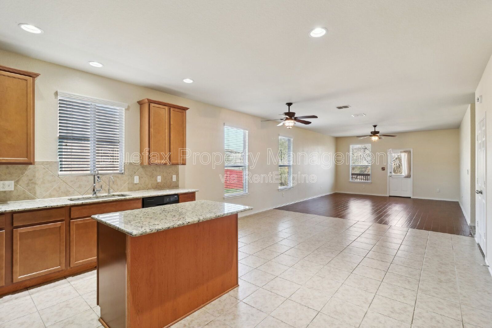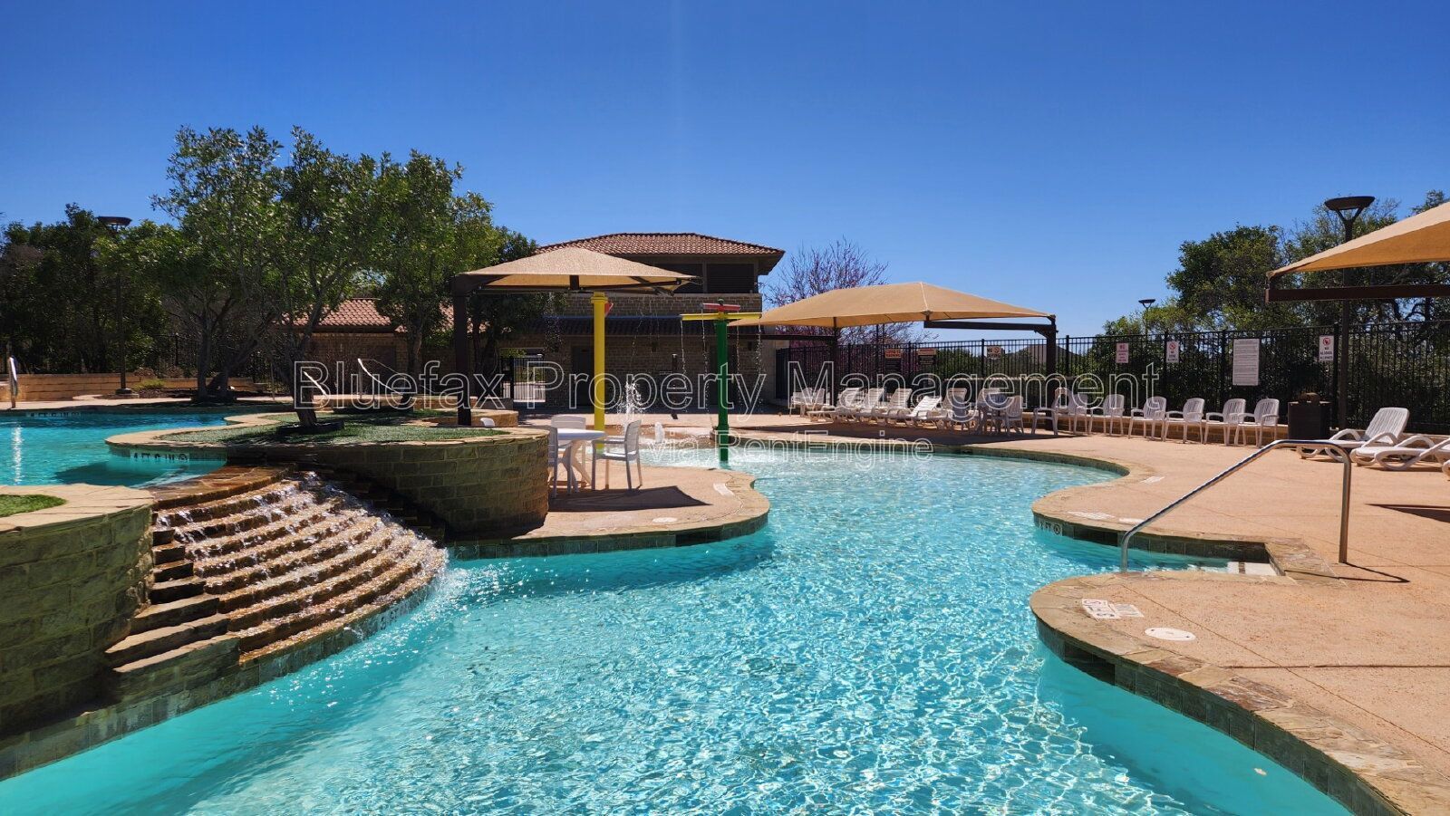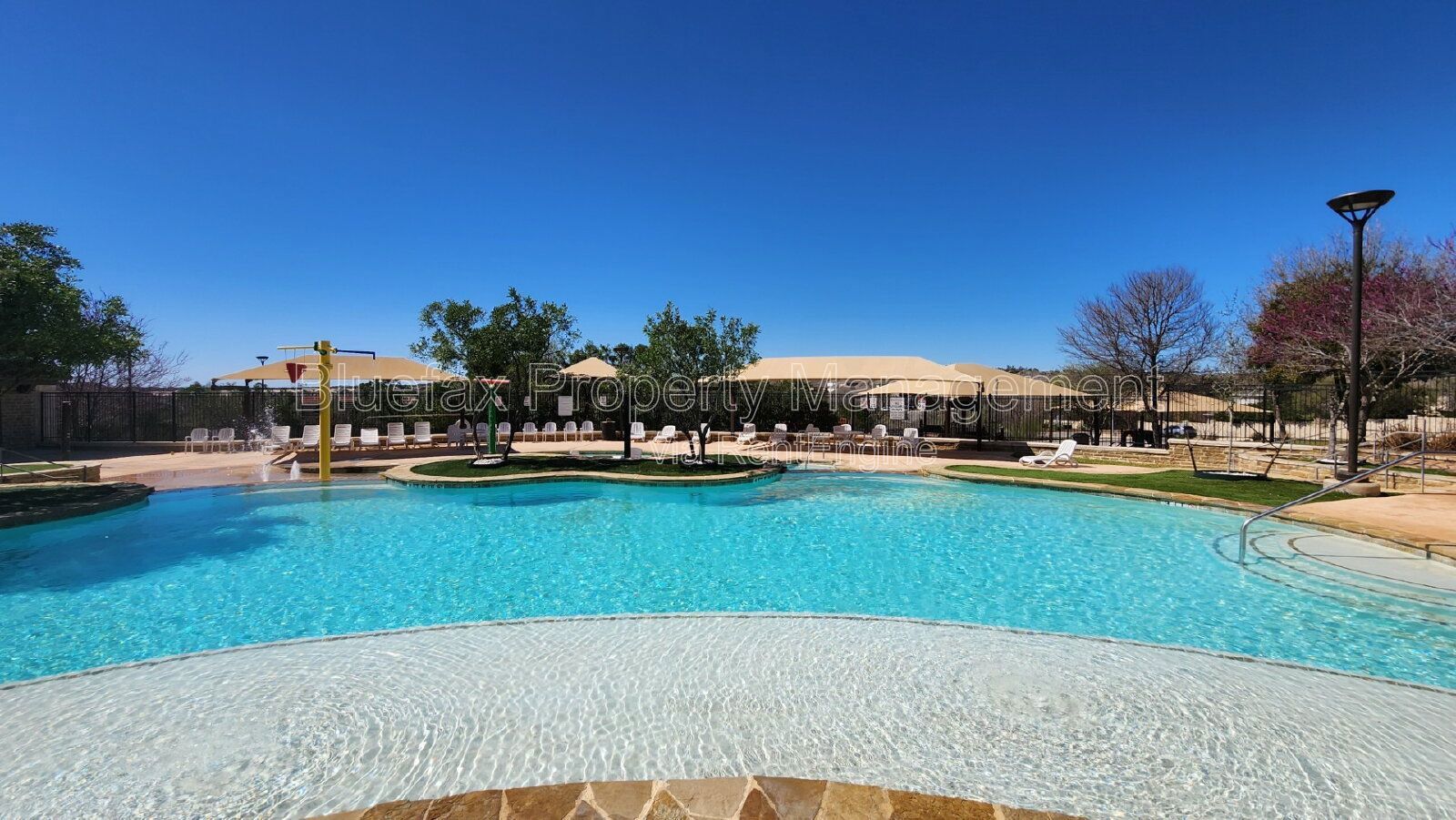 Greenbelt behind the property gives a more secluded, country feel. Kitchen features gas cooking and granite countertops, plus an island, while opening to the dining and family spaces. Split floor plan offers privacy with master suite situated at the back and two secondary bedrooms at the front. Lovely french doors provide a quiet work space in the office for working from home or schoolwork. After you're done working, enjoy the amazing neighborhood amenities just down the street - a gorgeous two-level pool and playground are within easy walking or biking distance.