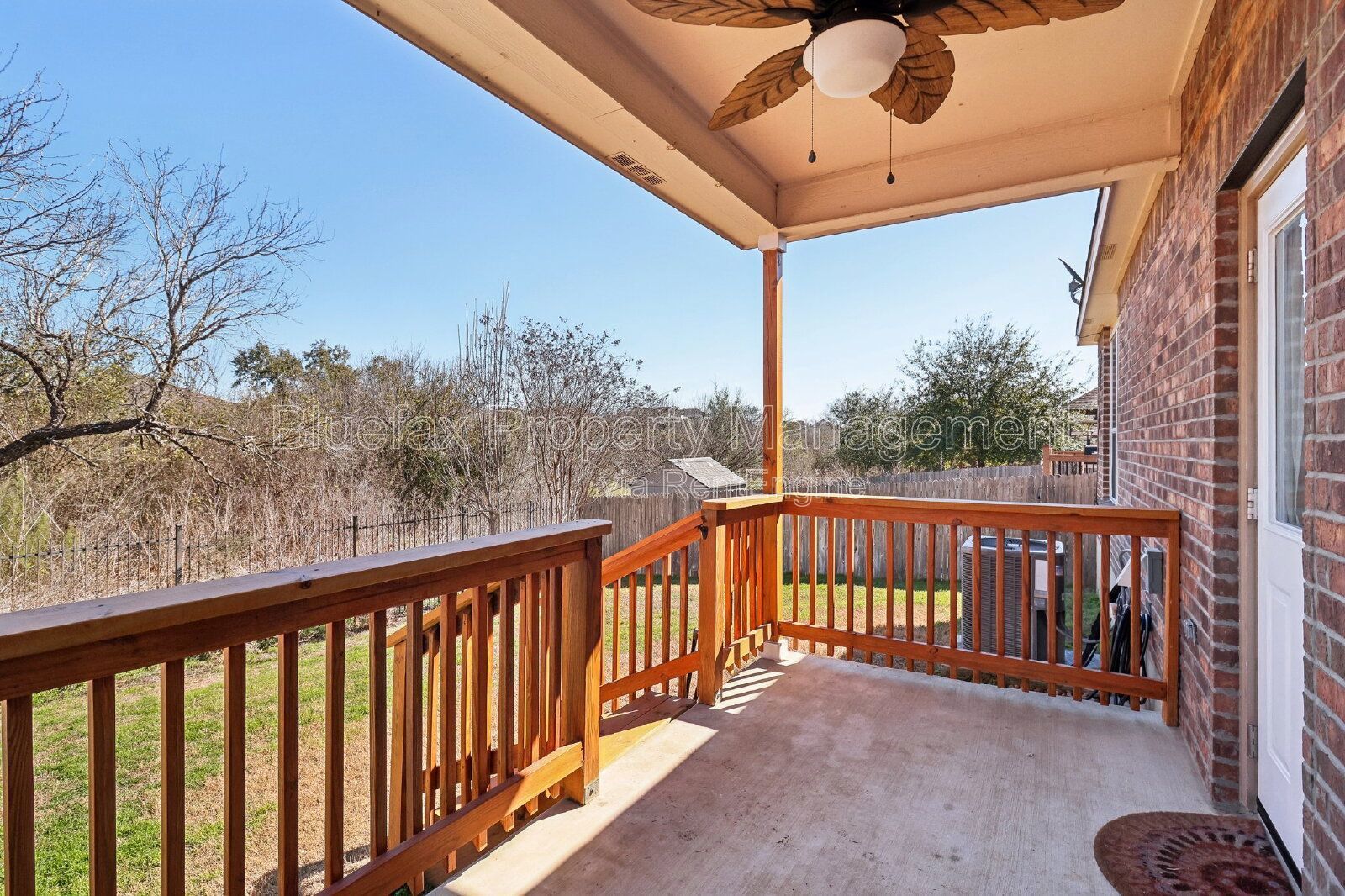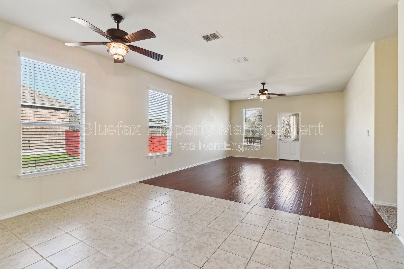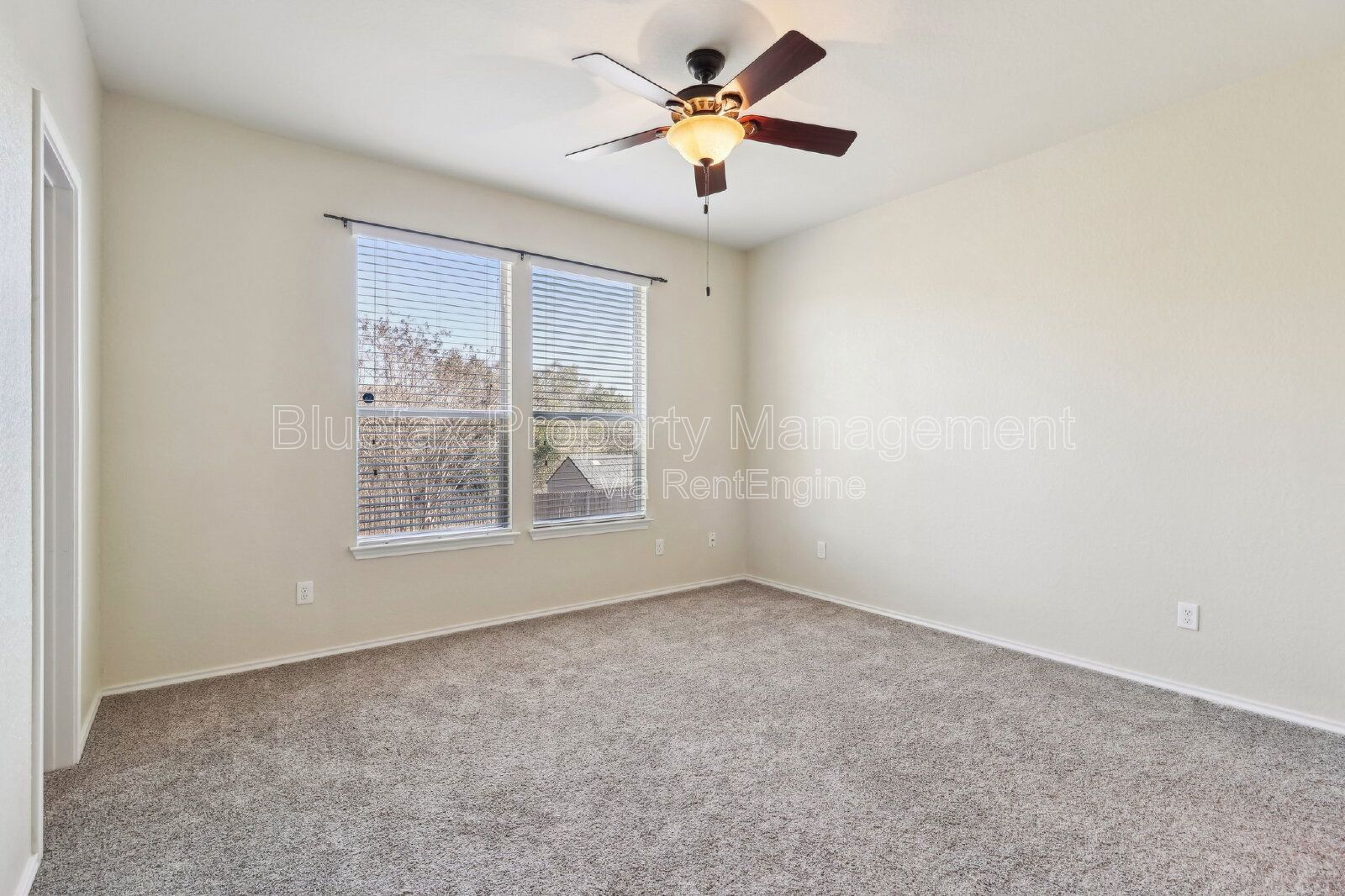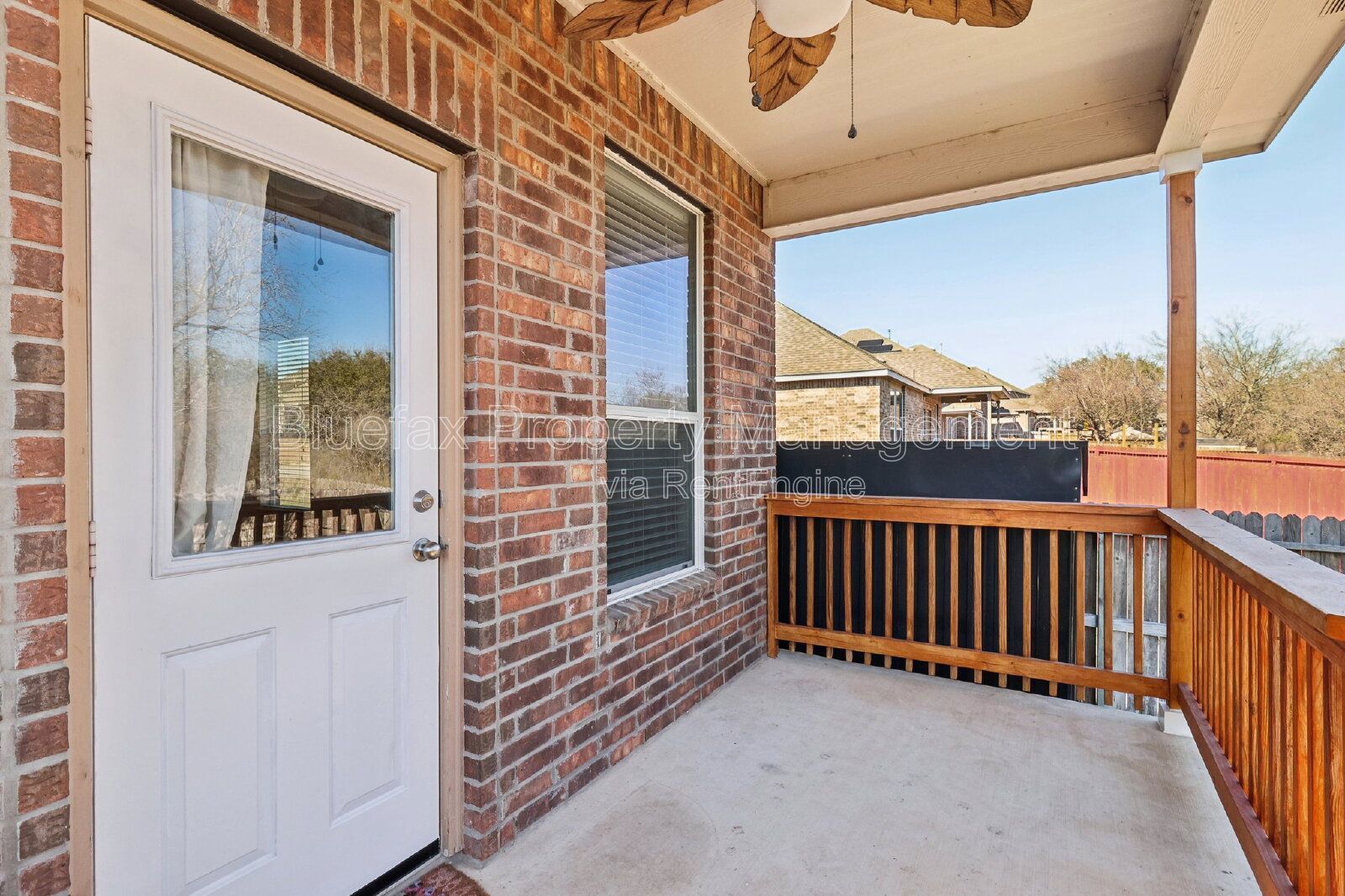 Greenbelt behind the property gives a more secluded, country feel. Kitchen features gas cooking and granite countertops, plus an island, while opening to the dining and family spaces. Split floor plan offers privacy with master suite situated at the back and two secondary bedrooms at the front. Lovely french doors provide a quiet work space in the office for working from home or schoolwork. After you're done working, enjoy the amazing neighborhood amenities just down the street - a gorgeous two-level pool and playground are within easy walking or biking distance.
