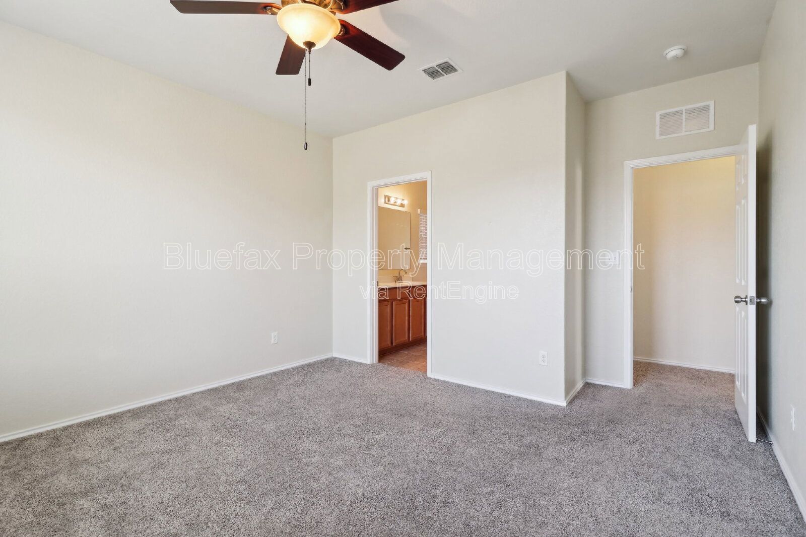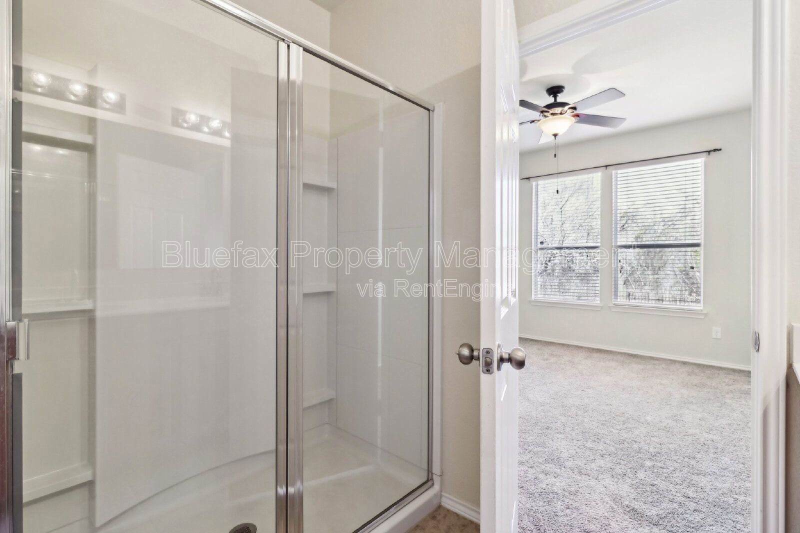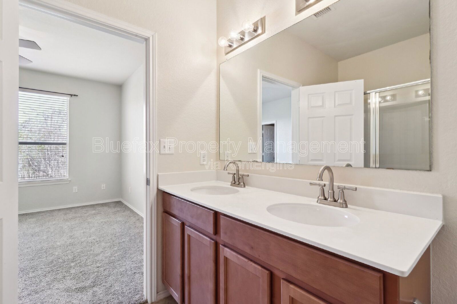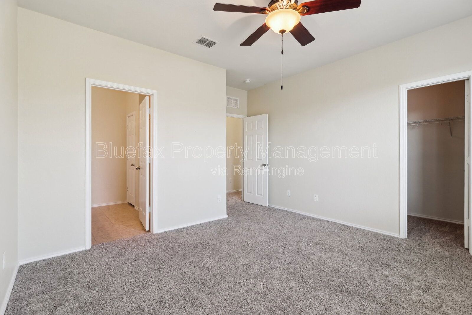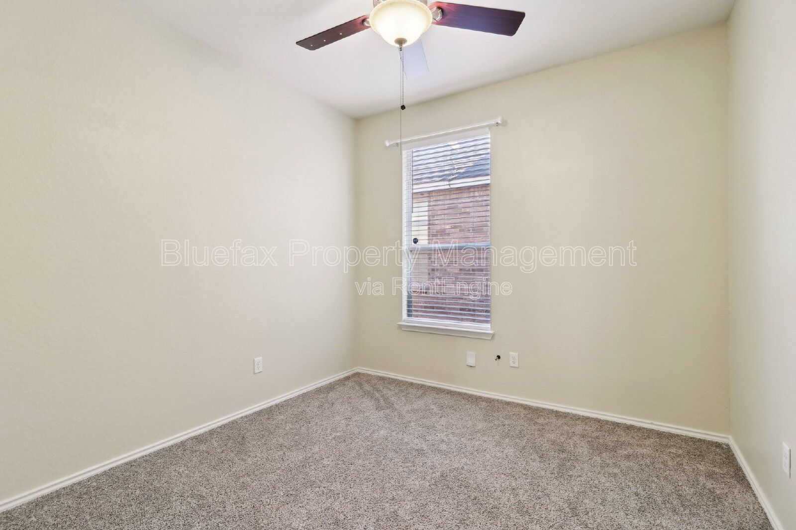 Greenbelt behind the property gives a more secluded, country feel. Kitchen features gas cooking and granite countertops, plus an island, while opening to the dining and family spaces. Split floor plan offers privacy with master suite situated at the back and two secondary bedrooms at the front. Lovely french doors provide a quiet work space in the office for working from home or schoolwork. After you're done working, enjoy the amazing neighborhood amenities just down the street - a gorgeous two-level pool and playground are within easy walking or biking distance.